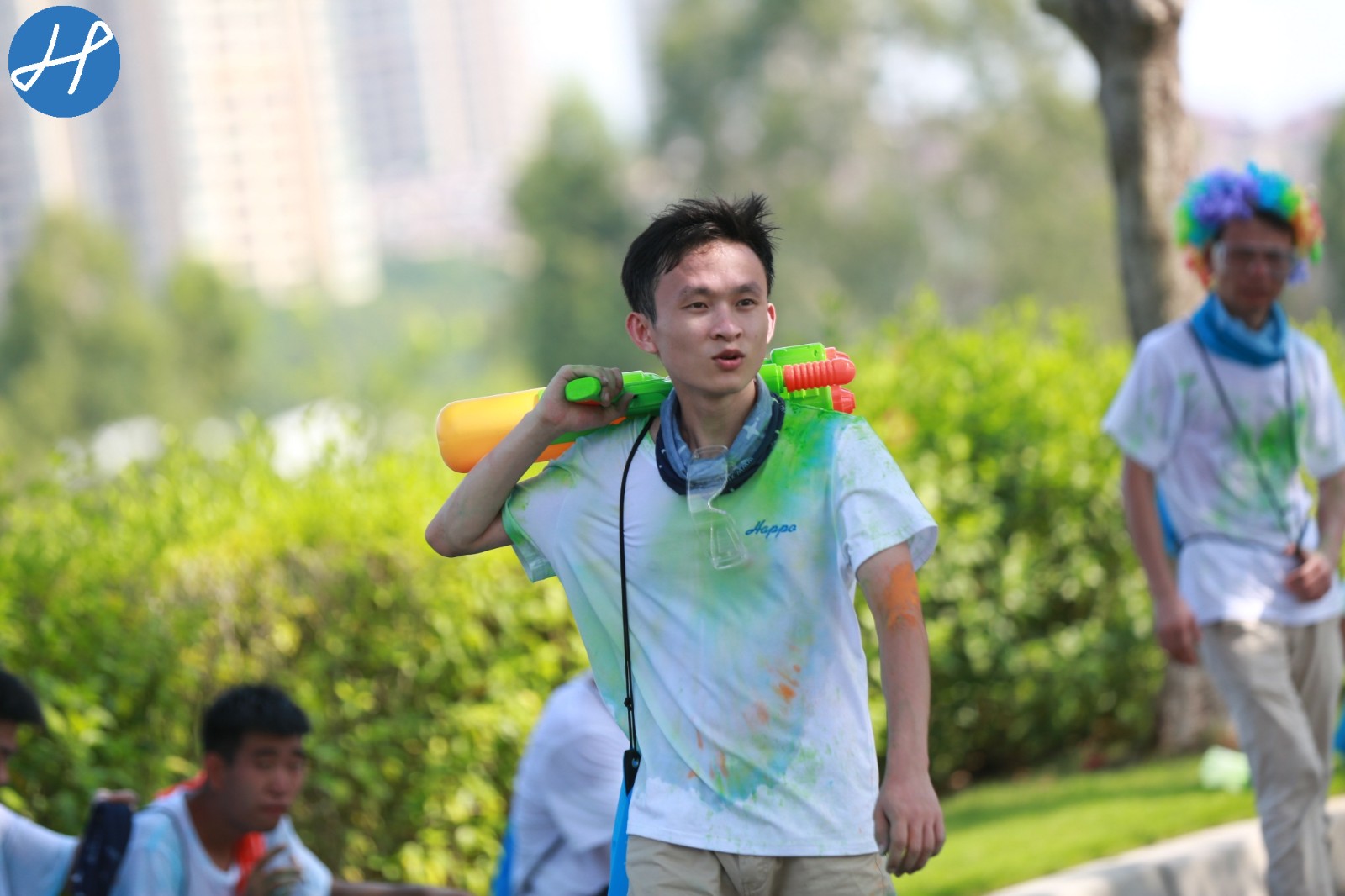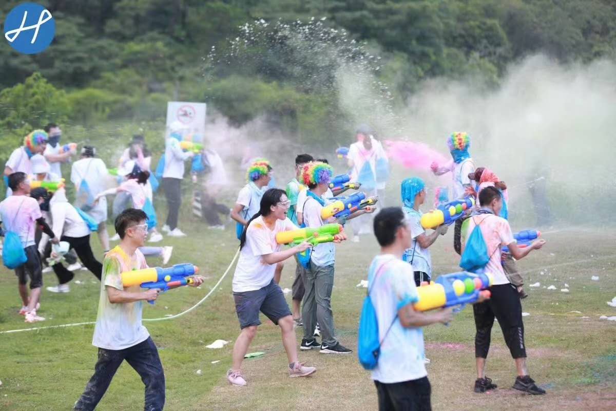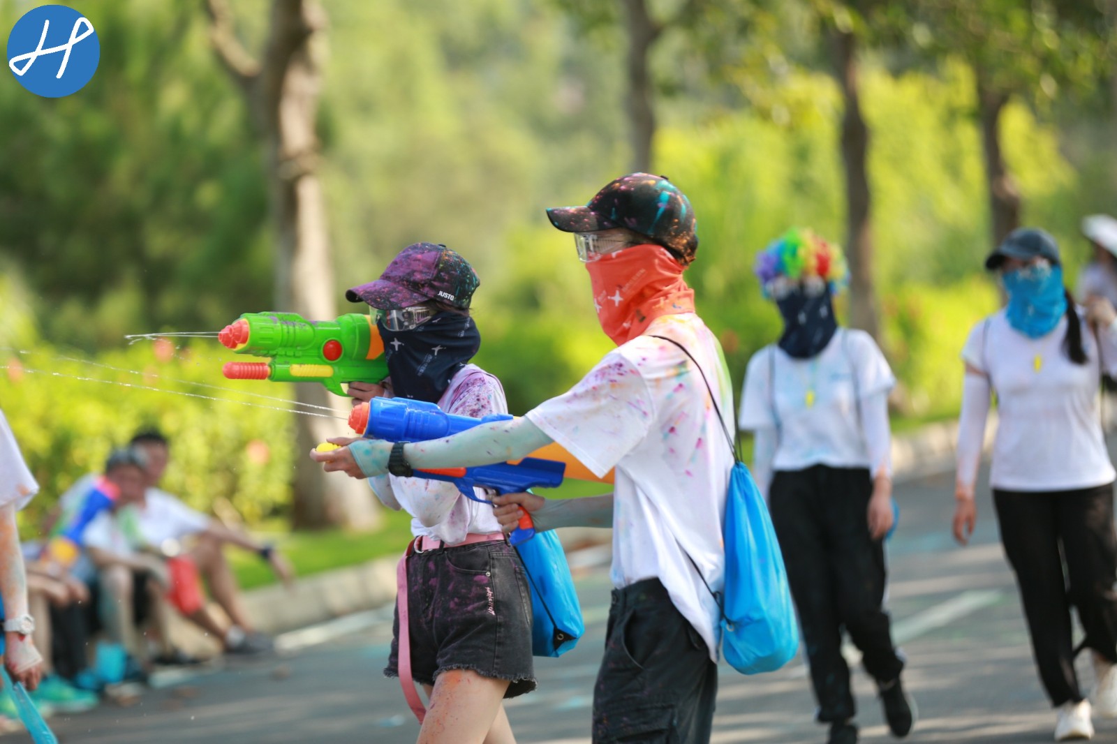 兜兜轉(zhuǎn)轉(zhuǎn)五公里。水戰(zhàn)、彩色戰(zhàn)輪番上演。當(dāng)伙伴們跑到終點(diǎn),一場(chǎng)大戰(zhàn)早已等待著你。大伙兒像逮到獵物一般,抓起手上的彩色粉末,開始互拋,水槍四射。當(dāng)你憋緊一口氣,從中突圍而出,每個(gè)人的身上都已經(jīng)留下繽紛的色彩,人人都成為了一處“移動(dòng)”的風(fēng)景。