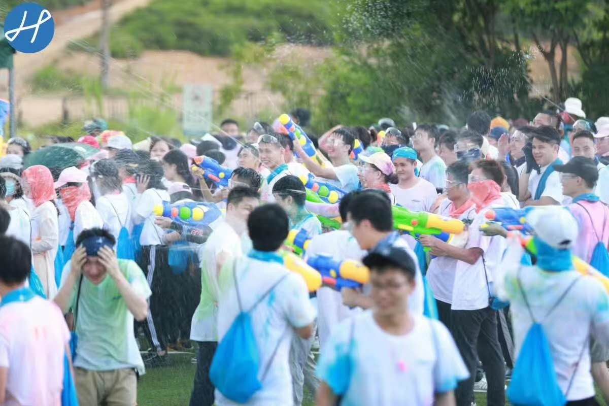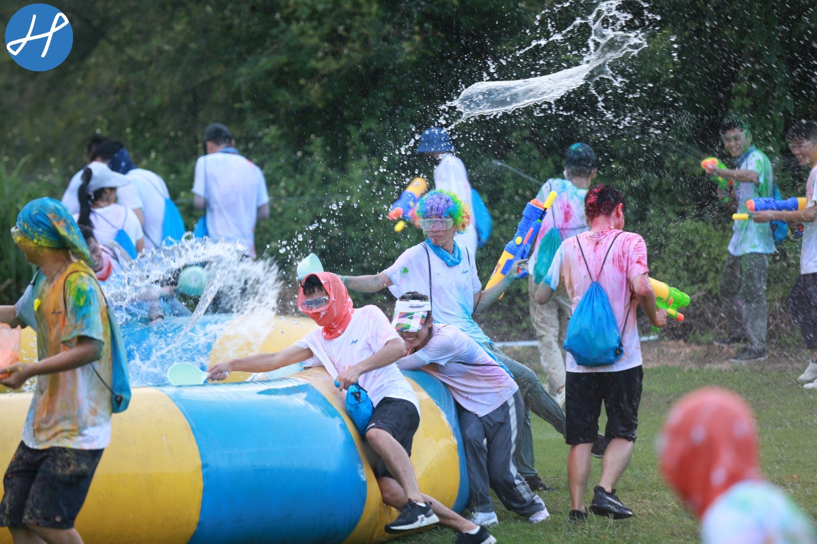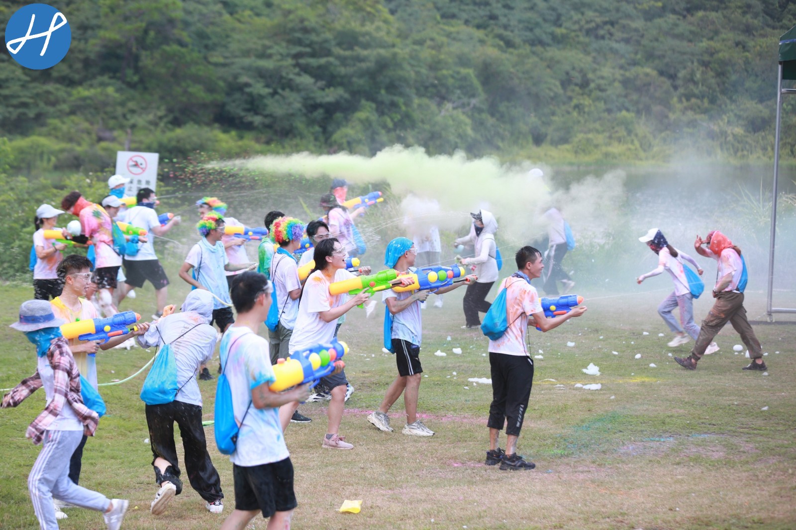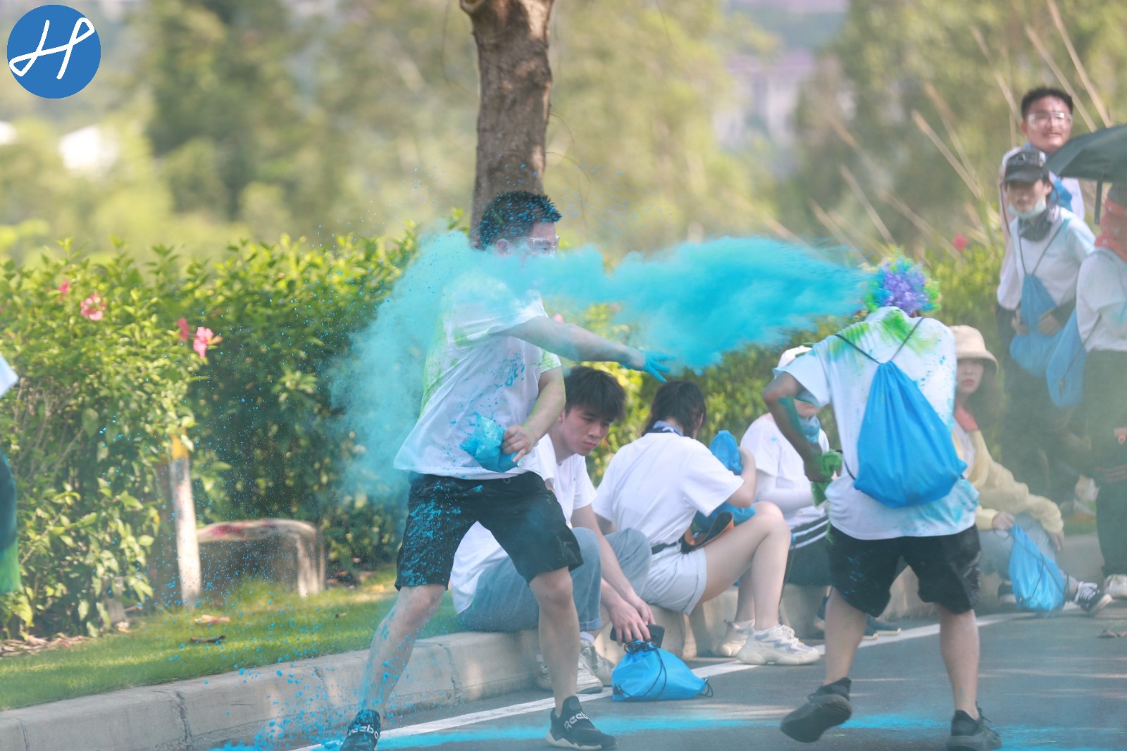 兜兜轉(zhuǎn)轉(zhuǎn)五公里。水戰(zhàn)、彩色戰(zhàn)輪番上演。當(dāng)伙伴們跑到終點(diǎn),一場(chǎng)大戰(zhàn)早已等待著你。大伙兒像逮到獵物一般,抓起手上的彩色粉末,開始互拋,水槍四射。當(dāng)你憋緊一口氣,從中突圍而出,每個(gè)人的身上都已經(jīng)留下繽紛的色彩,人人都成為了一處“移動(dòng)”的風(fēng)景。