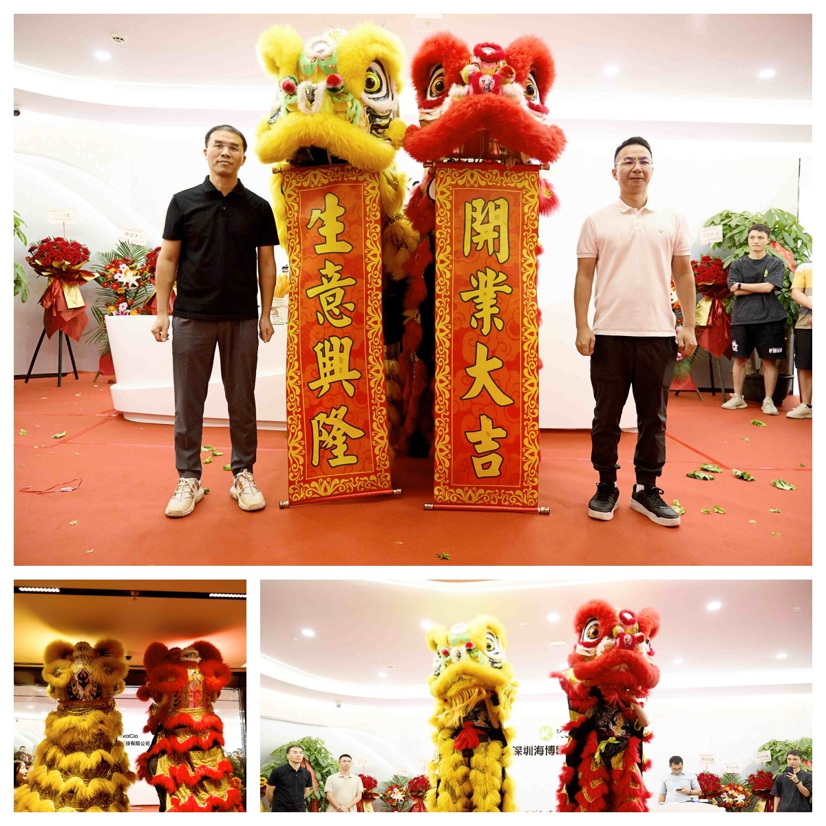 吉時(shí)啟,慶典盛,儀式正式啟動(dòng)。袁總手持金筆,為靈獅點(diǎn)睛。一點(diǎn)左眼,靈氣滿(mǎn)盈;二點(diǎn)右眼,志在乾坤;三點(diǎn)天庭,鴻運(yùn)當(dāng)頭。點(diǎn)睛之筆落成,沉睡的雄獅頃刻煥發(fā)神采,伴隨著激昂的鑼鼓聲騰躍起舞,采青納福,將“財(cái)氣”與“好運(yùn)”送入公司,寓意海博歐&咔咔可洛未來(lái)前程似錦,興旺昌隆.
